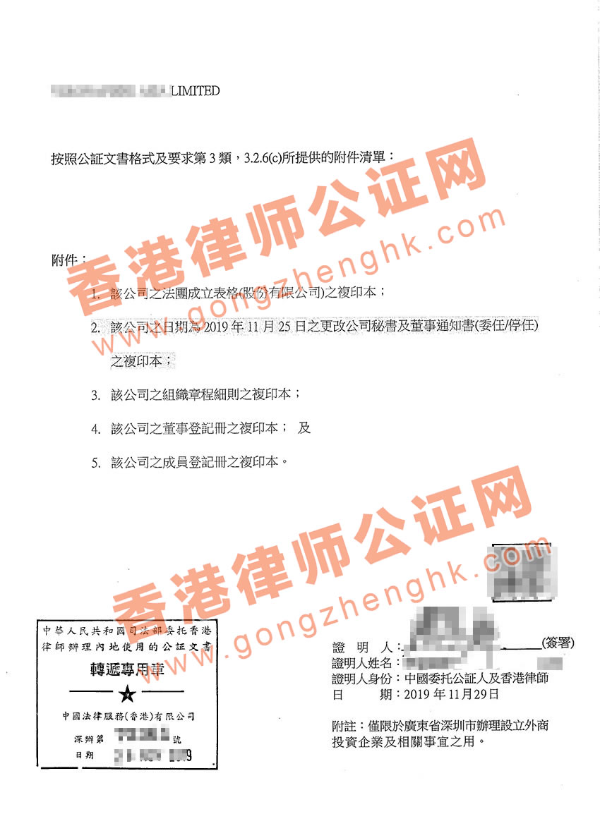 香港公司公證用于深圳設(shè)立公司所需資料