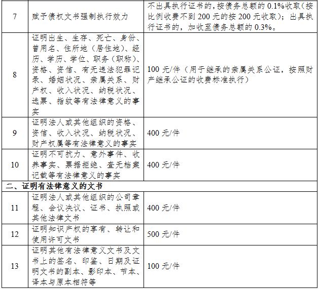 二、本目錄以外的公證服務(wù)收費(fèi)實(shí)行市場(chǎng)調(diào)節(jié)價(jià)。公證機(jī)構(gòu)為當(dāng)事人提供公證服務(wù)的過程中,根據(jù)當(dāng)事人委托或要求,發(fā)生公證業(yè)務(wù)以外的其他服務(wù)收費(fèi)由公證機(jī)構(gòu)與當(dāng)事人協(xié)商確定。
